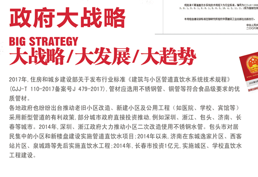 产品涉及用于学校、医院、宾馆、居民区等自来水、直饮水工程、太阳能、供暖系统、天然气、化工医疗等低压流体输送。